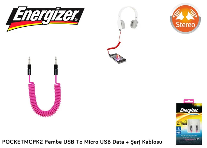 Ürün Adı Energizer POCKETMCPK2 Pembe USB To Micro USB Data + Şarj Kablosu