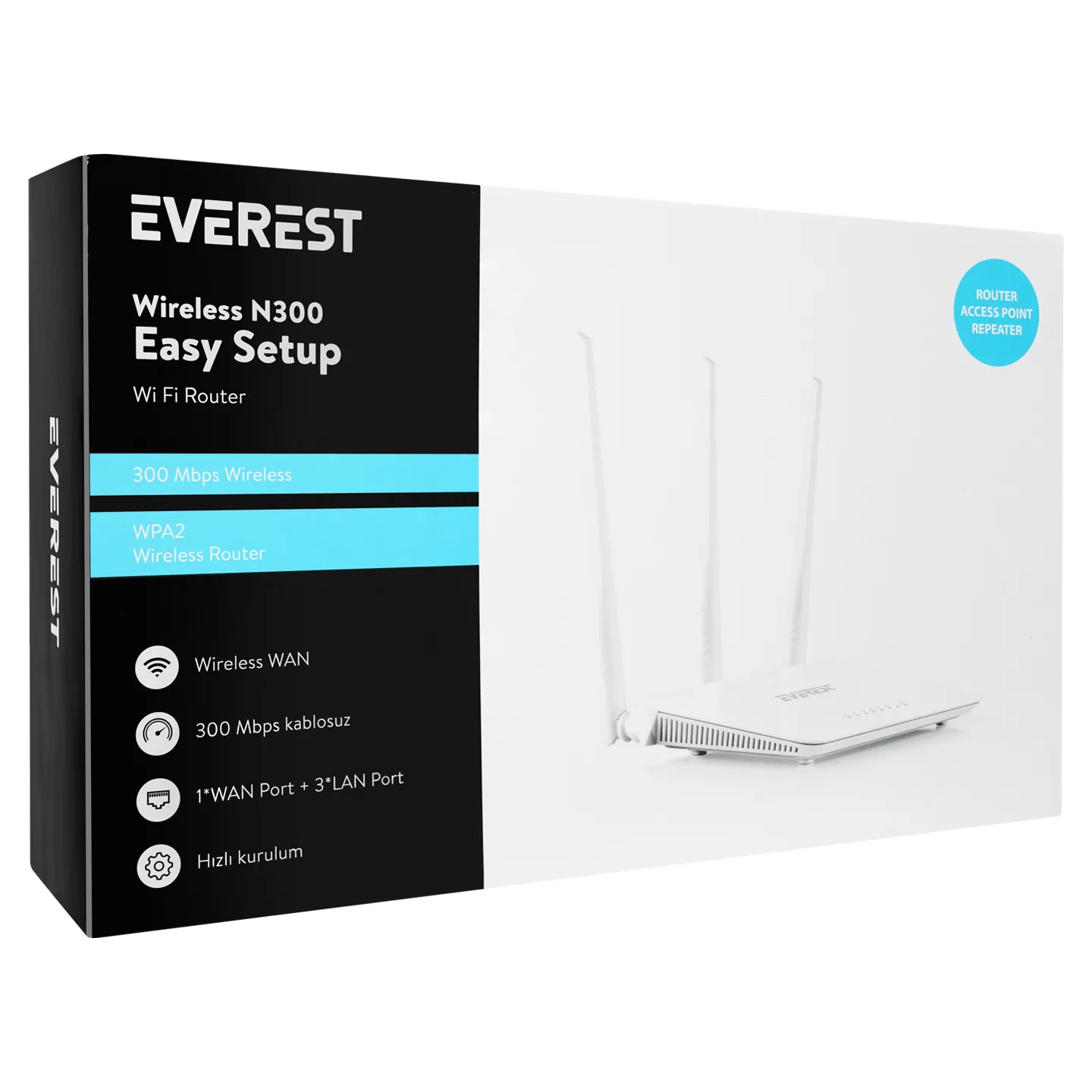 | Ürün Adı | Everest EWR-F303 300Mbps 2.4GHz 3x 5dBi Anten 1x WAN 3x LAN Repeater+AP+WISP Destekli Wireless Router |