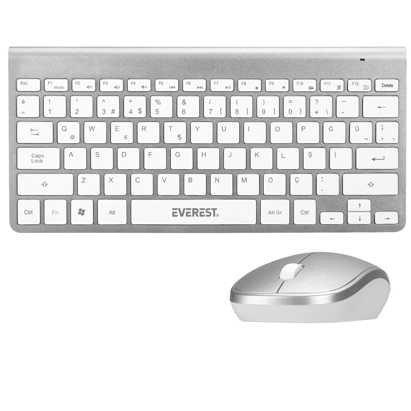 Everest KB-BT72 ELITE Silver Metalik Kablosuz Q Klavye + Mouse Set