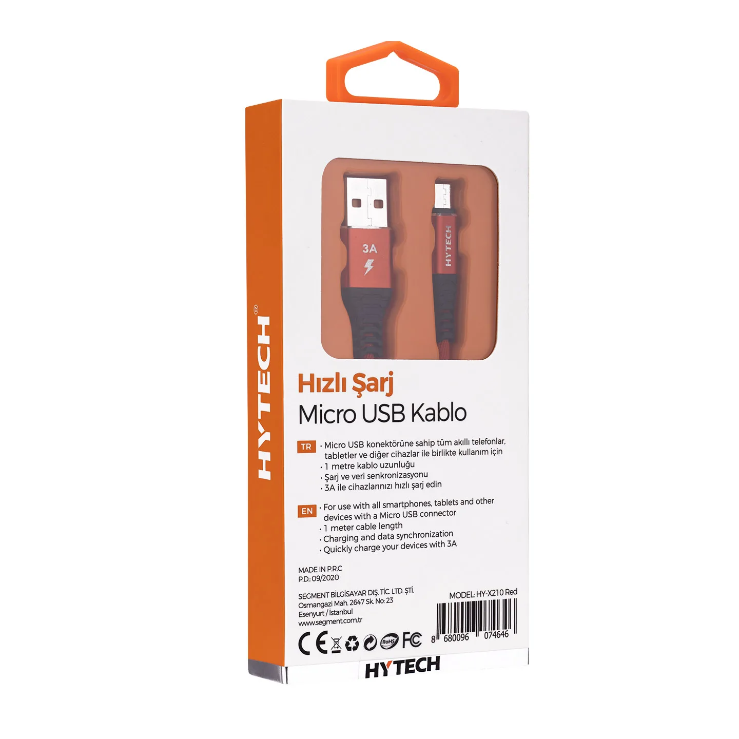 Hytech HY-X210 3A Micro Usb 1m Kırmızı Data + Sarj Kablosu