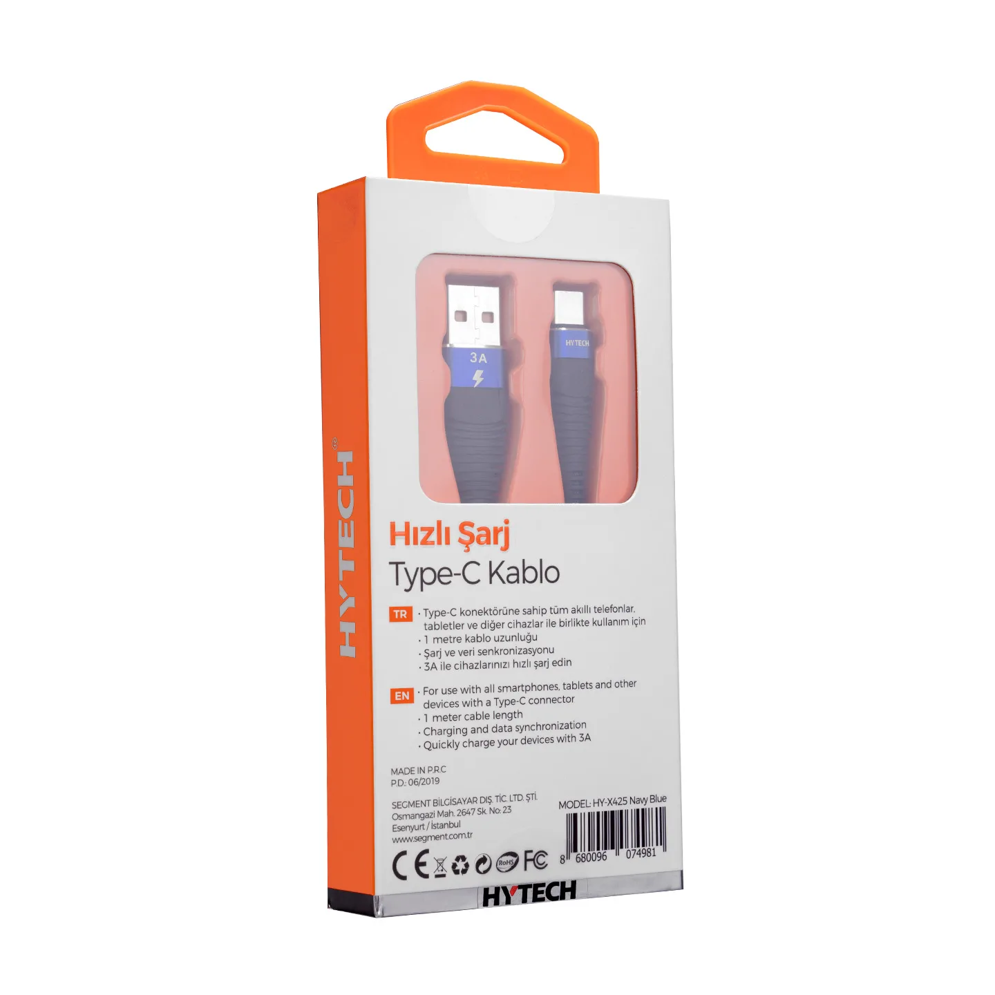 | Ürün Adı | Hytech HY-X425 3A Type-C 1m Lacivert Data + Şarj Kablosu |