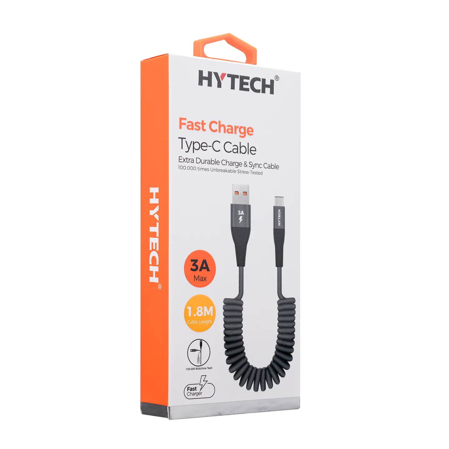 Hytech HY-X470 1.8m 3A Type-C Spiral Kılıflı Gri Data + Sarj Kablosu