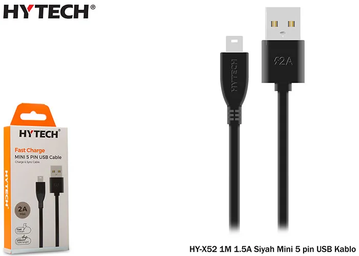 | Ürün Adı | Hytech HY-X52 1M 1.5A Siyah Mini 5 pin USB Kablo |