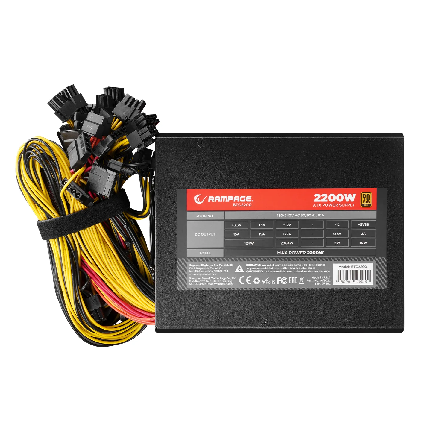 Rampage BTC2200 Real 2200W 16* PCIe VGA Soket 14cm+8cm 2* Fanlı Bitcoin Power Supply