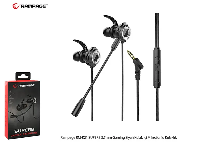 Ürün Adı Rampage RM-K21 SUPERB 3,5mm Gaming Siyah Kulak İçi Mikrofonlu Kulaklık