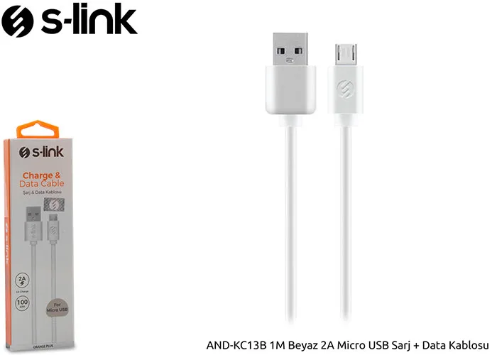 S-link AND-KC13B 1M Beyaz 2A Micro USB Sarj + Data Kablosu