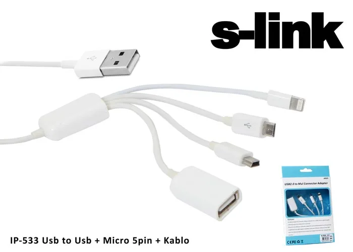 | Ürün Adı | S-link IP-533 Usb to Usb + Micro 5pin + iPad4/Mini Çevirici Kablo |