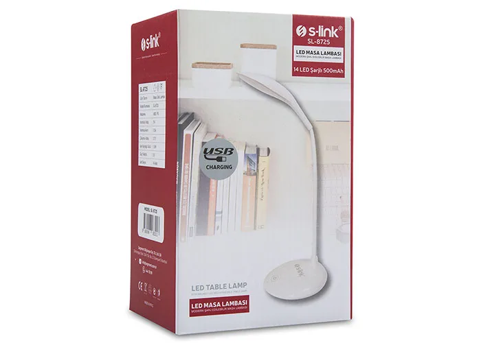 | Ürün Adı | S-link SL-8725 Beyaz 14 LED Şarjlı 500mAh Taşınabilir Masa Lambası |