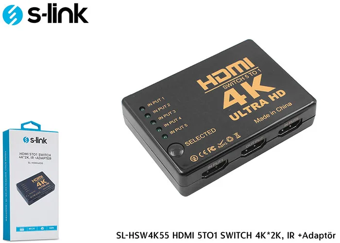 S-link SL-HSW4K55 HDMI 5TO1 SWITCH 4K*2K, IR +Adaptör