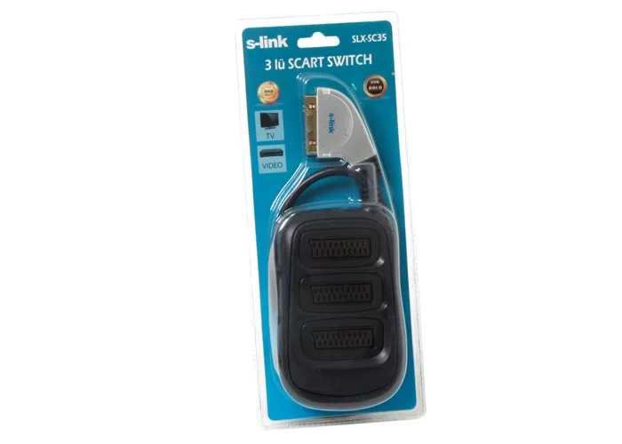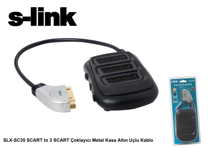 S-link SLX-SC35 SCART to 3 SCART Çoklayıcı Metal Kasa Altın Uçlu Kablo
