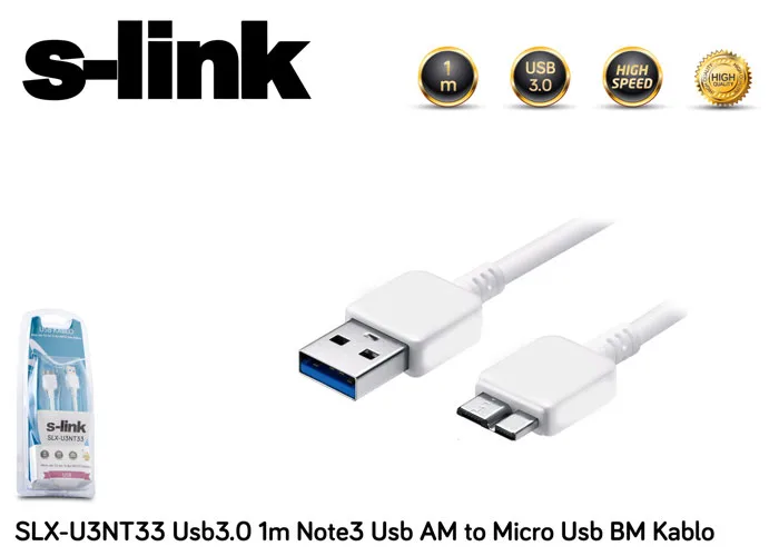 | Ürün Adı | S-link SLX-U3NT33 1m Micro Usb3.0 Samsung Note3/S5 Data + Şarj Kablosu |