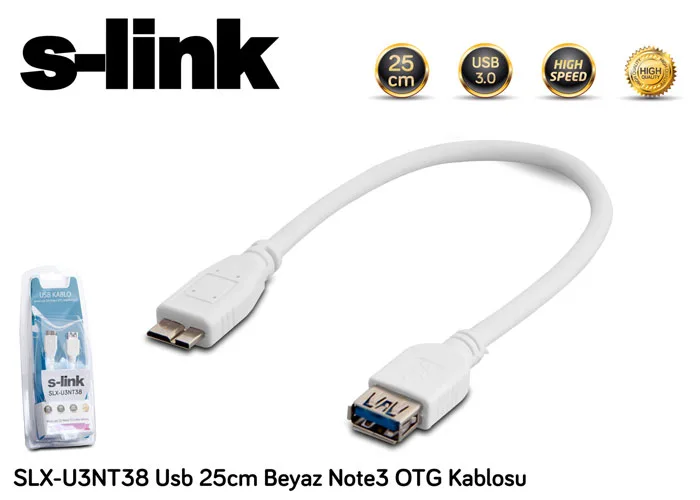 S-link SLX-U3NT38 Micro Usb3.0 25cm Beyaz Samsung Note için OTG Kablosu