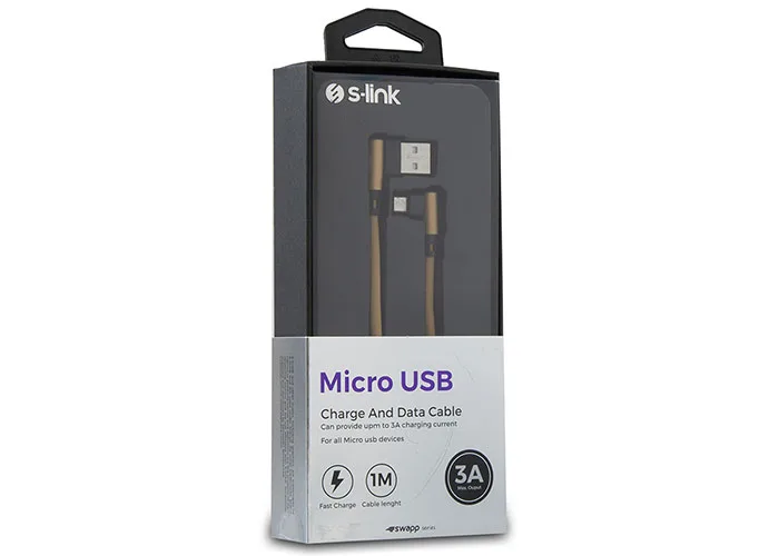 S-link SW-C555 1M 3A Micro Altın Kılıflı Metal -L- Kablo