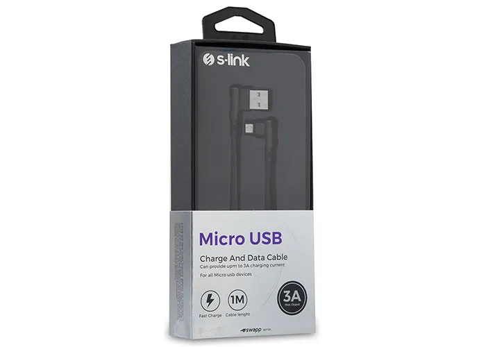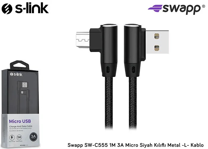 S-link SW-C555 1M 3A Micro Siyah Kılıflı Metal -L- Kablo