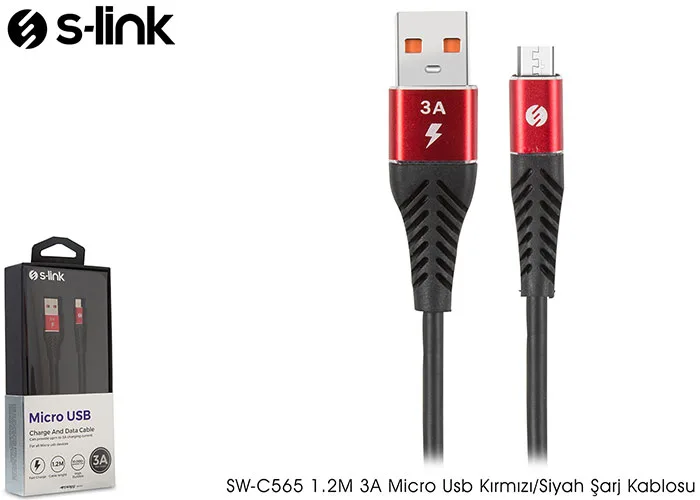 | Ürün Adı | S-link SW-C565 1.2M 3A Micro Usb Kırmızı/Siyah Şarj Kablosu |