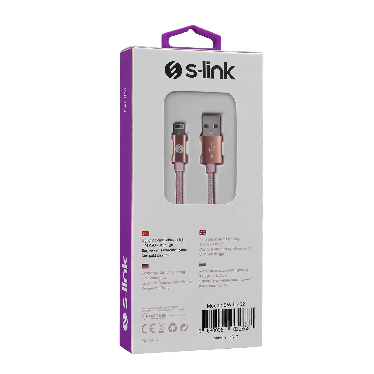 | Ürün Adı | S-link SW-C602 2A iPhone Lightning 1m Rose Gold Lightning Data + Sarj Kablosu |