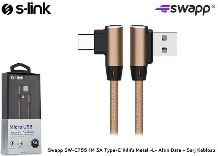 | Ürün Adı | S-link SW-C755 1M 3A Type-C Kılıflı Metal -L- Altın Data + Sarj Kablosu |