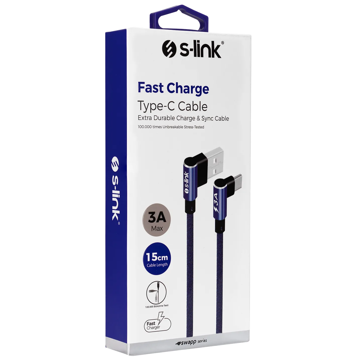 S-link SW-C757 3A – 15cm Type-C Lacivert Kılıflı Metal -L- Kablo