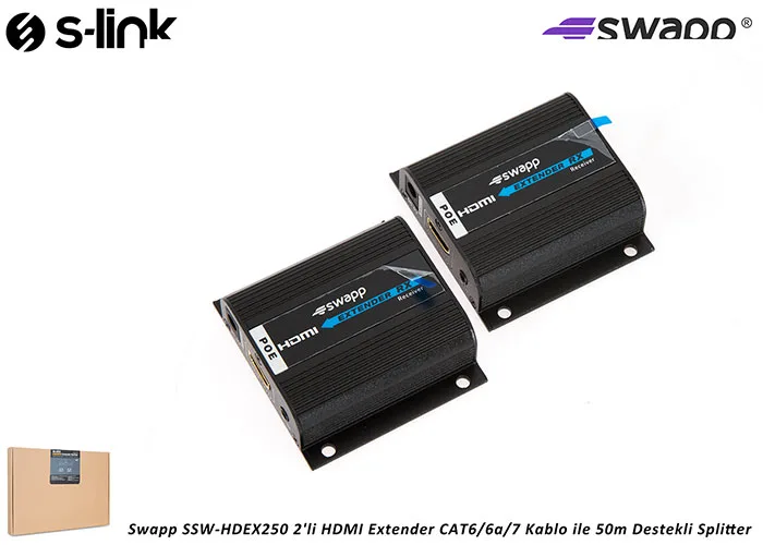 S-link SW-HDEX250 2’li HDMI Extender Uzatıcı CAT6/6a/7 Kablo ile 50m Destekli Splitter