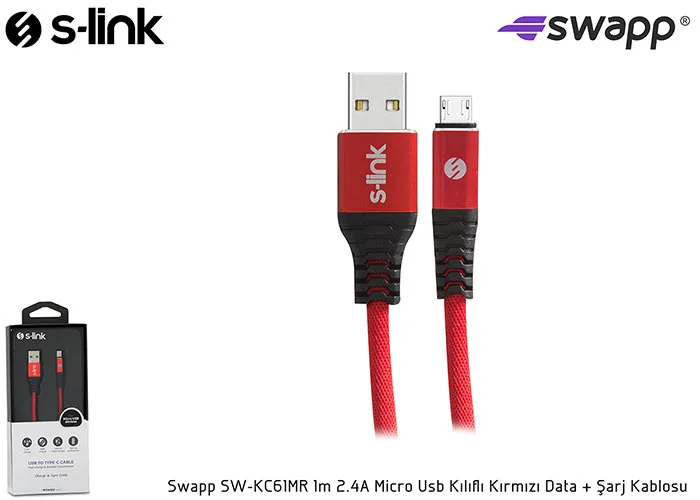 | Ürün Adı | S-link SW-KC61MR 1m 2.4A Micro Usb Kılıflı Kırmızı Data + Şarj Kablosu |