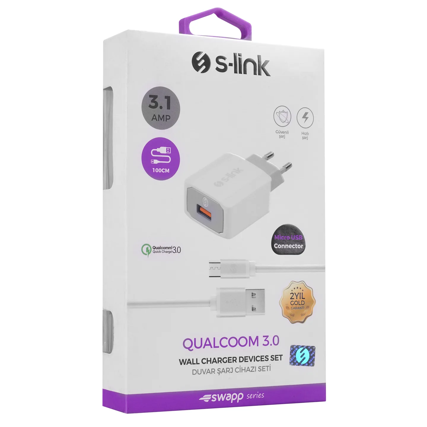 | Ürün Adı | S-link SW-QEM28B Qualcomm 3.0 Ev Hizli Sarj Cihazi ve Micro USB Data + Sarj Kablosu |